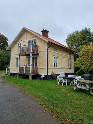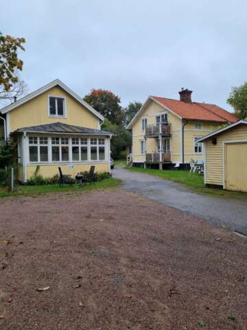 Det ena bostadshuset har två våningsplan och balkonger på övervåningen, vilket ger de boende tillgång till utomhus yta och utsikt mot den lugna innergården.